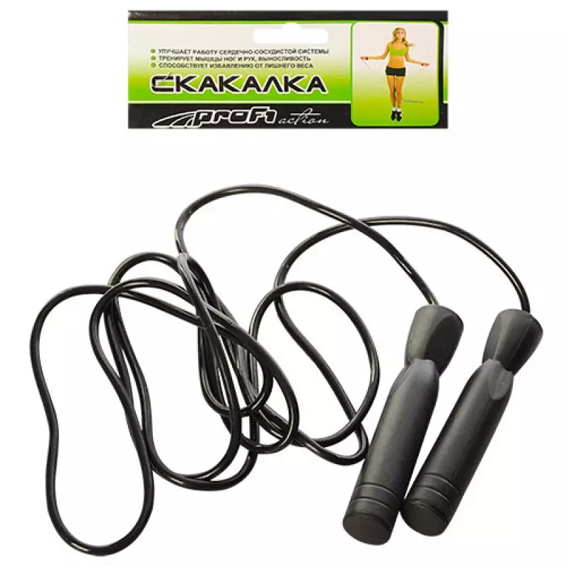 Скакалка MS 0067 мотузка, гума, пласт.ручки з підшипн., кул., 13,5-22 см