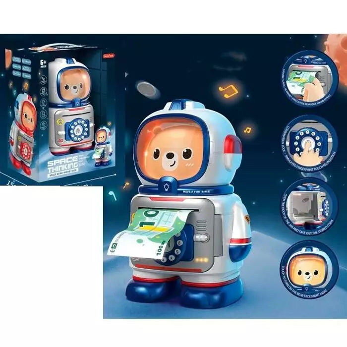 Скарбничка MK 5061 космонавт,сейф з кодом,затягує купюри,2 кольори,муз.,світло,бат.,кор.,24-29-15см.