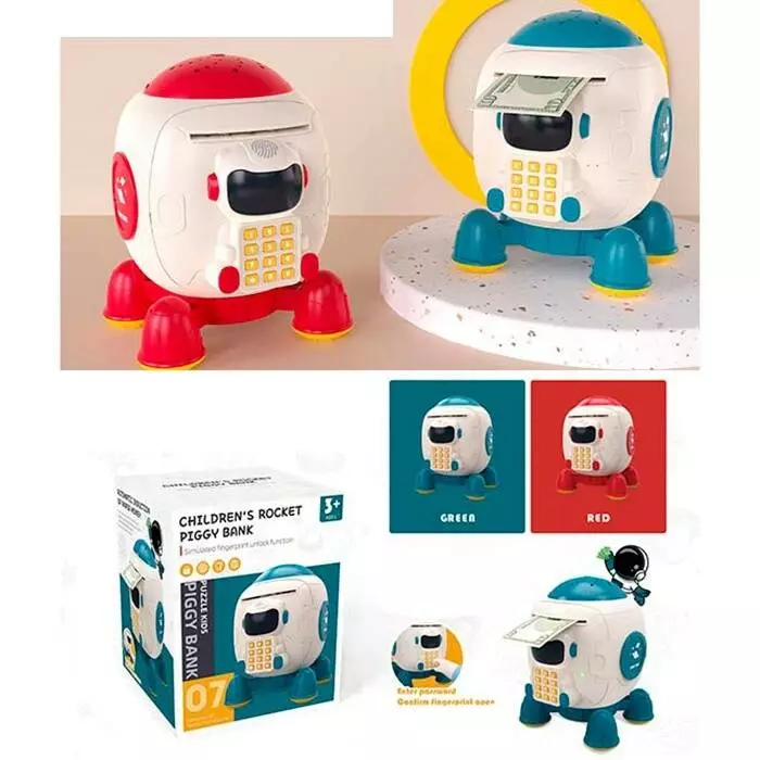 Скарбничка MK 5062 ракета,сейф з кодом,затяг.купюри,проектор ніч.неба,2кольори,муз.,світло,бат.,кор.