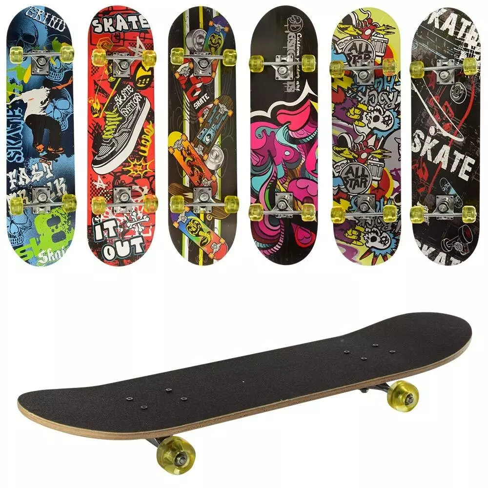 Скейт MS 0321-1 алюмінієва підвіска, колеса ПУ, 7 шарів, 6 видів, розібраний, кул., 78,5-20 см