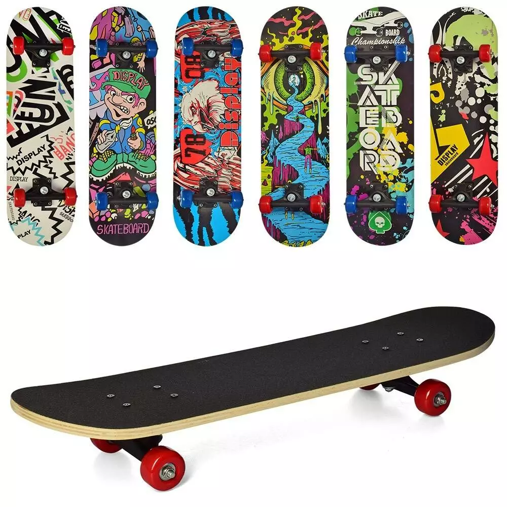 Скейт MS 0354-3 пласт. підвіска, колеса ПВХ, 7 шарів, 6 видів, розібраний, кул., 70,5-20 см