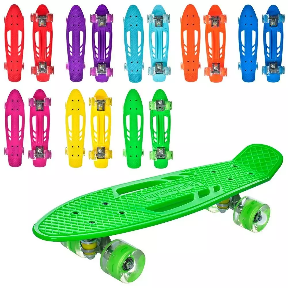 Скейт MS 0459-1 пенні, алюм.підвіска, колеса ПУ, 8 кольорів, світло, кул., 55,5-14,5см.