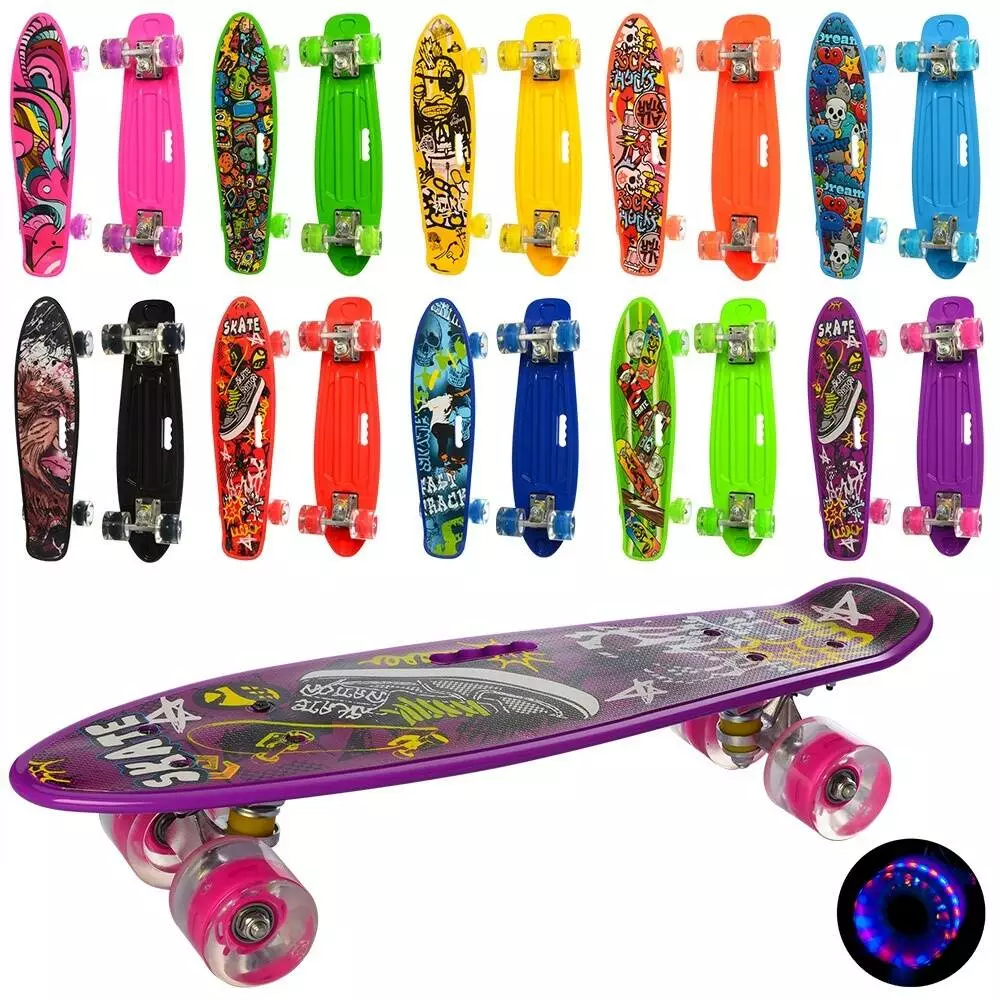 Скейт MS 0749-6 пенні 55-14,5 см., колеса ПУ світло, малюнок, розібр., 10 видів, кул.