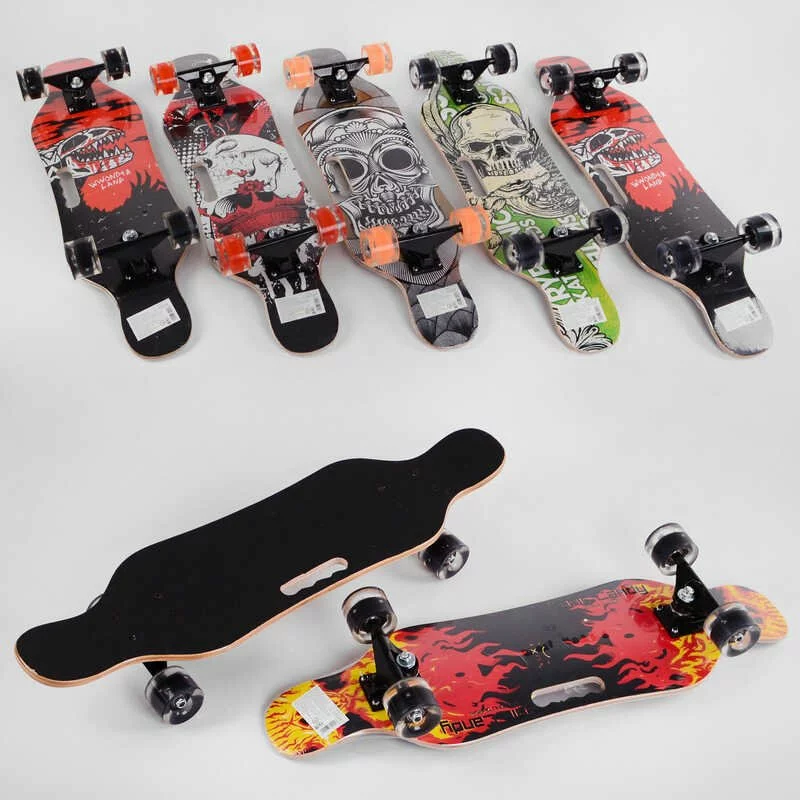 Скейт С 32024 (6) 6 видів, колеса світяться PU d = 6см, 6 шарів канадського клена, підшипники ABEC-9, дека з ручкою