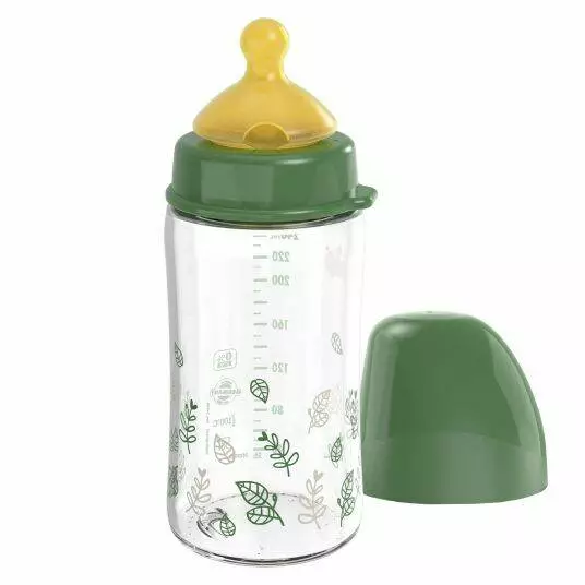 Скляна пляшка 240 мл. з широкою горловиною"Вишенька-Зелена Серія" (латекс)/ NIP