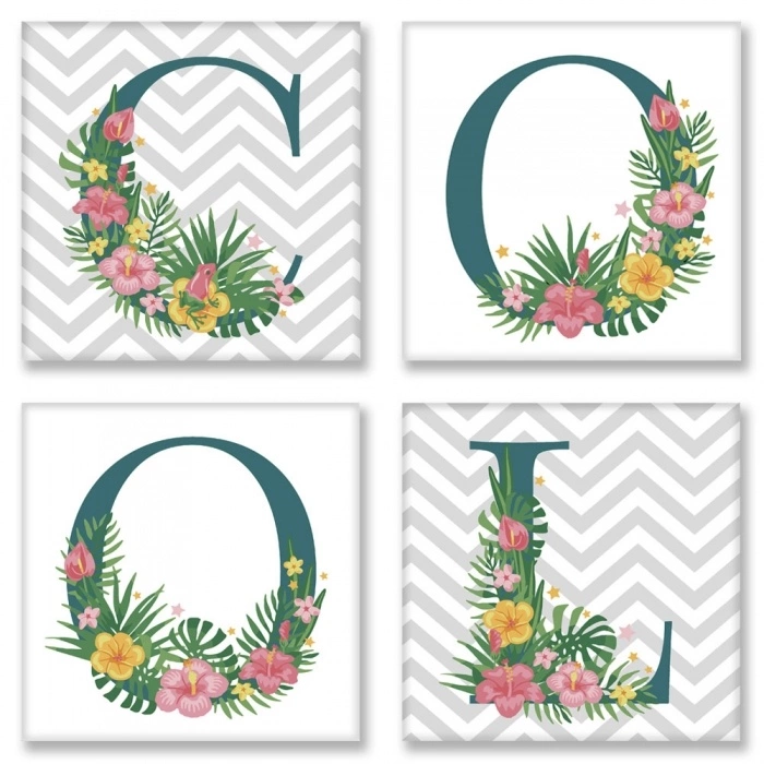 Додайте затишок у свою оселю! Малюйте чудові квіткові слова за номерами і додавайте сенсу вашому інтер'єру. Кожна буква розміщена на окремому полотні з кольоровим фоном — ви можете скласти ексклюзивну композицію на свій смак. Обирайте ніжні Провансові мотиви, Скандинавську лаконічність або Лофтовий контраст. Склад набору: -4 полотна з кольоровим фоном на підрамниках 18*18. На кожному полотні розміщені контури букви в квітковому оформленні з номерами під розмальовку. - 2 пензлики (середній та маленький) - Набір акрилових пронумерованих фарб - Контрольний лист - Інструкція