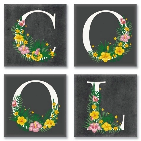 Додайте затишок у свою оселю! Малюйте чудові квіткові слова за номерами і додавайте сенсу вашому інтер'єру. Кожна буква розміщена на окремому полотні з кольоровим фоном — ви можете скласти ексклюзивну композицію на свій смак. Обирайте ніжні Провансові мотиви, Скандинавську лаконічність або Лофтовий контраст. Склад набору: -4 полотна з кольоровим фоном на підрамниках 18*18. На кожному полотні розміщені контури букви в квітковому оформленні з номерами під розмальовку. - 2 пензлики (середній та маленький) - Набір акрилових пронумерованих фарб - Контрольний лист - Інструкція