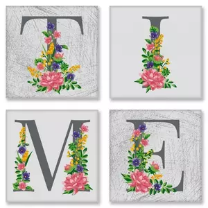 Додайте затишок в свою оселю! Малюйте чудові квіткові слова за номерами і додавайте сенсу вашого інтер'єру. Кожна буква розташована на окремому полотні з кольоровим фоном - ви зможете скласти ексклюзивну композицію на свій смак. Вибирайте ніжні мотиви Провансу, Скандинавську лаконічність або лофтового контраст. Склад набору: -4 полотна з кольоровим фоном на підрамниках 18 * 18. На кожному полотні розміщені контури букви в квітковому оформленні з номерами під розмальовку. - 2 пензлика (середня і маленька) - Набір акрилових пронумерованих фарб - Перелік пунктів - Інструкція КОЖЕН НАБІР оформлений в подарункову обгортку З РУЧКОЮ !!!!