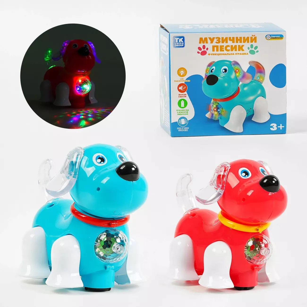 Собачка на батарейках TK 56499 (48) "TK Group", ОЗВУЧУВАННЯ УКРАЇНСЬКОЮ МОВОЮ, 2 кольори, колесо вільного ходу, підсвічування, диско-куля, пісня, розмовляє, в коробці