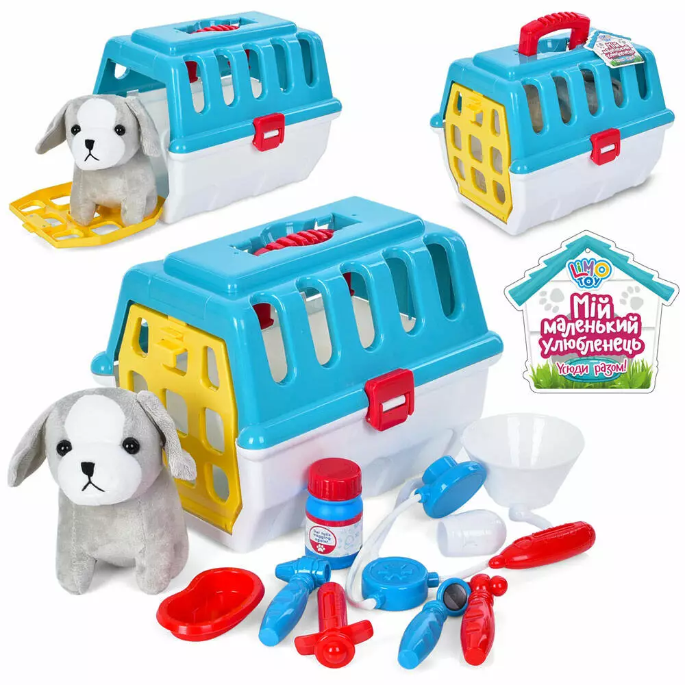 Собака 231-1 м'яконабивна, медичні інструменти, переноска, кул., 27-21-21 см.