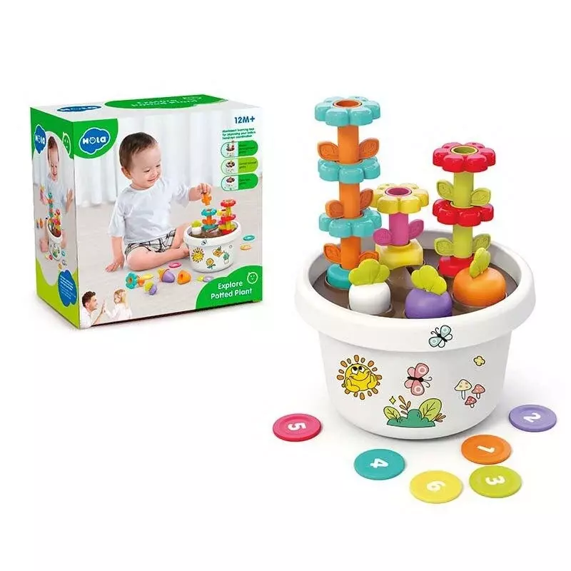 Привити любов дитини до природи на етапах розвитку дуже просто. Бренд “Hola” пропрацьовує кожну деталь своєї іграшки та сьогодні представляє вашій увазі неймовірний горщик з квітами. Ця серія призначена для Монтессорі виховання дитини, для тренування нематеріальних здібностей дітей, таких як спостережливість, логічне мислення та маніпулятивні навички. Особливості: - іграшка виконана з якісних і нетоксичних матеріалів; - така іграшка виконує роль сортера; - а наборі є три моркви, дві з них можна розібрати, одна дзеленчить; - є багато деталей для створення різнорівневих квіточок; - фішки з цифрами, які можна закидувати до горщика; - додатково є наліпки для горщика.