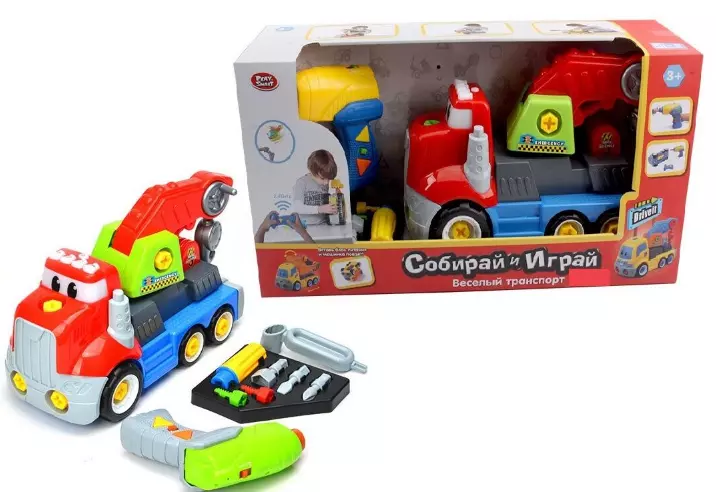 Серія "Збирай і Грай" від виробника Play Smart "це високодеталізовані, дитячі моделі спецтехніки, які володіють унікальним функціоналом і винятковою якістю. Конструкція машинки повністю імітує реально существующею спецтехніку зі збереженням головного призначення машини. Модель поєднує в собі сучасний дизайн і чудову корекцію. Головним достоїнством моделі виступає - повністю розбірна конструкція, яку Ви зможете розібрати і також легко зібрати завдяки шуруповерту або викрутку. Особливості моделі: - управління відбувається за рахунок інфрачервоного пульта; - пульт управління це і шуруповерт і пульт управління машинкою; - в режимі шуруповерт насадка обертається як в ліву сторону, так і в праву; - щоб активувати рух машинки необхідно витягти з шуруповерт жовтий патрон і помістити його в спеціальний відсік в машинці, так встановиться зв'язок між пультом і іграшкою. - машинка може їхати вперед і назад; - викрутка зі змінними насадками; - насадку можна вставити в шуруповерт. Комплектація: - машинка; - шуруповерт; - ключ; - викрутка; - 3 насадки; - 2 запасних болта. Шуруповерт працює від 2х батарейок типу «АА» - не входять в комплект. Машинка працює від 3-х батарейок типу «АА» - не входять в комплект.