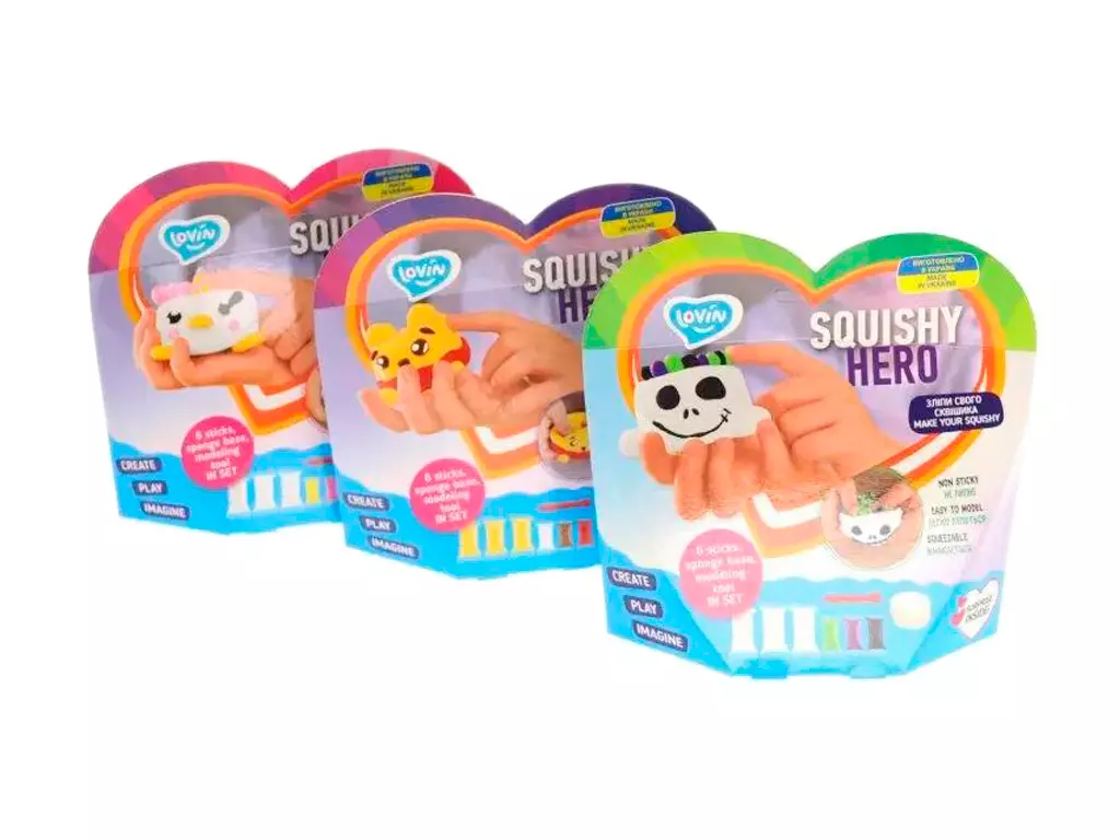 Дитяча любов до сквішів відома усім, проте мало хто пропонує зробити іграшку власними руками. Що ж, даний набір був створений саме для цього! Всього існує 12 варіантів героїв, а це означає, що кожен зможе обрати, щось для себе. В комплект входить інструмент для моделювання, 1 основа-губка, повітряний пластилін, детальна інструкція та приємний сюрприз. Після повного висихання сквішем можна бавитись, при акуратному стисканні герой відновлюватиме свою форму! Збери усіх героїв та грай разом з друзями!