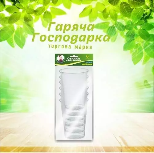 Стакан ПЛАСТИКОВИЙ ТМ "Гаряча Господарка" (80 мл.) прозорий 6 шт. 70шт/ящ УВ19-6-63