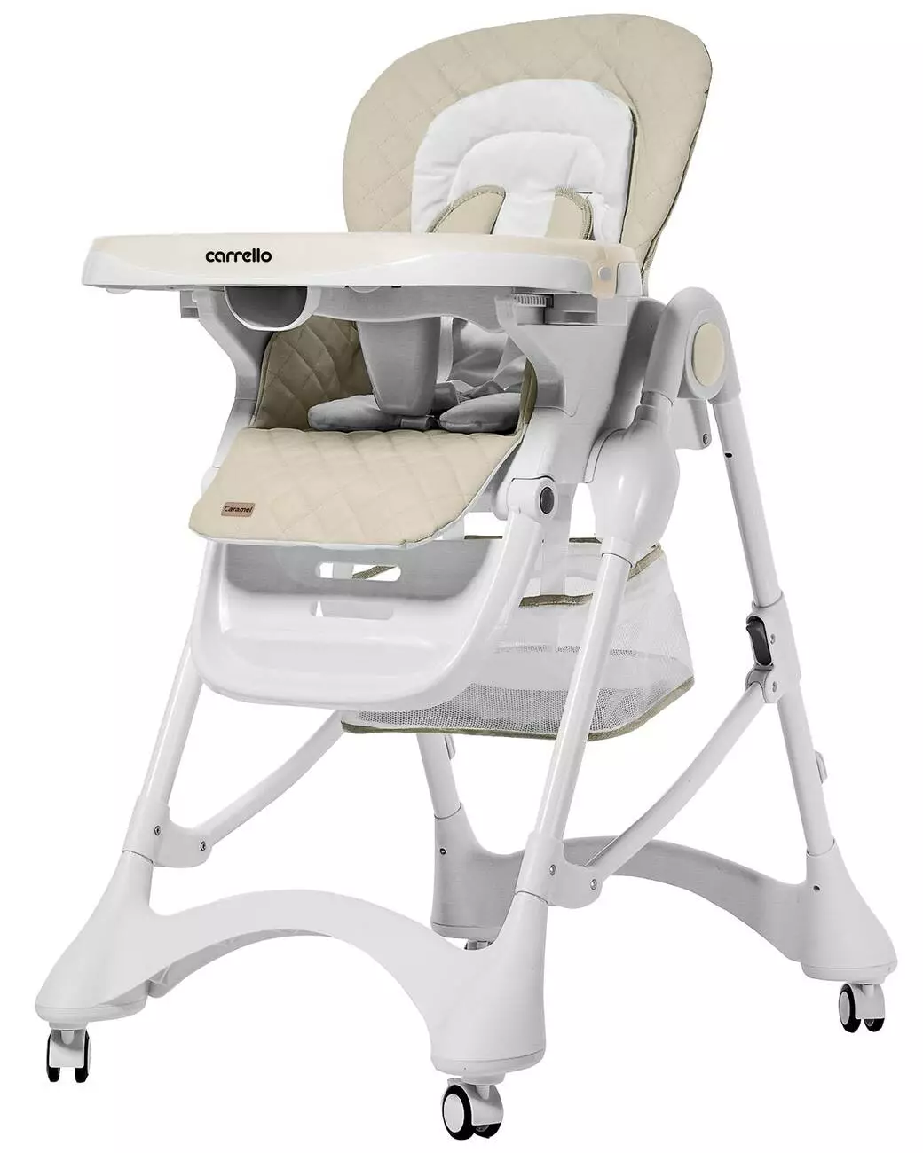 Стілець для годування CARRELLO Caramel має добре продуману стійку і безпечну конструкцію з відмінним функціоналом. Крім цього в ньому є всі необхідні регулювання і вельми просторе сидіння, завдяки яким стілець буде однаково зручним як піврічнійі, так і трирічній дитині. Стільчик обладнаний чотирма прогумованими коліщатками, які спрощують його переміщення. За необхідності, їх можна зафіксувати спеціальними стопорами.