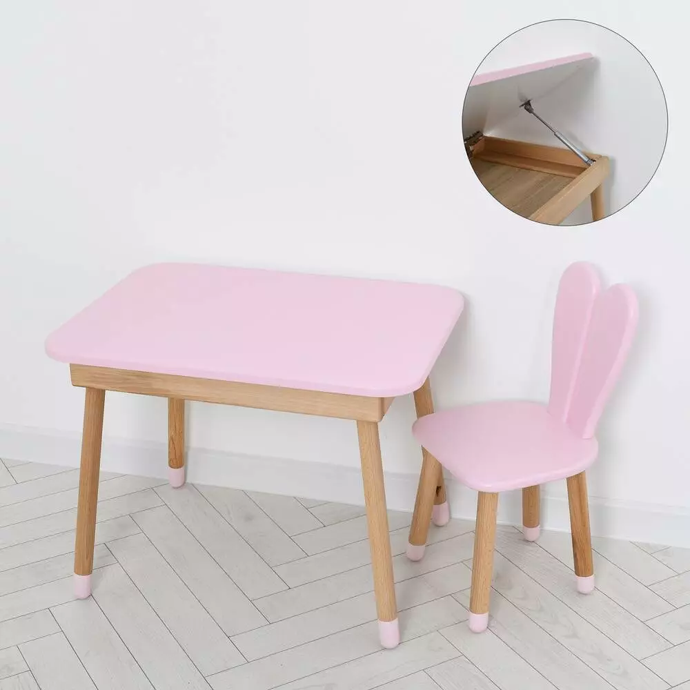 Столик 04-027R-TABLE зі стільчиком, зайчик, ящик, рожевий, 68-50 см.