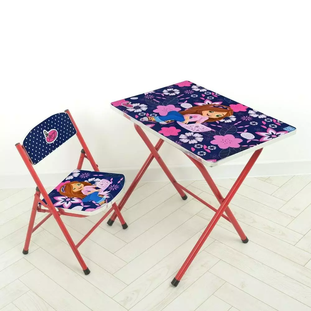 Столик M 19-GIRL складаний, стільниця 60-40см., 1 стільчик, кор., дівчинка в квітах.