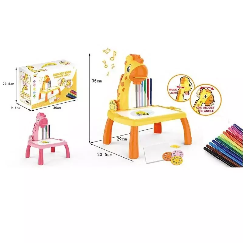 Столик з проектором 2200-4 (36) "Жирафик", 2 кольори, підсвічування, мелодія, 3 диски, 12 фломастерів, в коробці