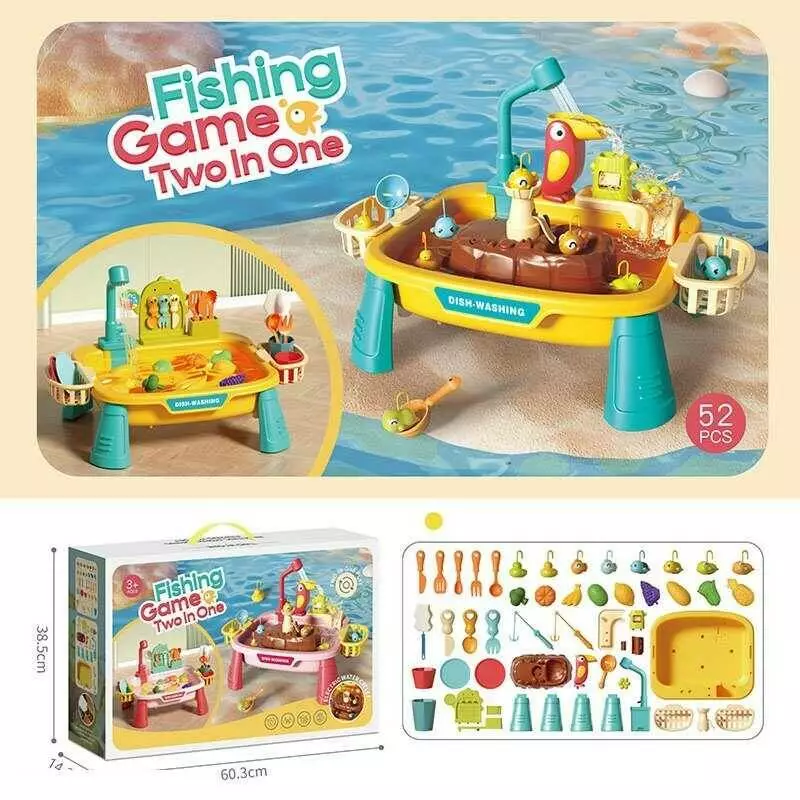 Столик з риболовлею L 666-80 /80 A (8) 33 аксесуари, дві гри в одному наборі, вудочки, морські тварини, циркуляція води, кухонне приладдя, в коробці