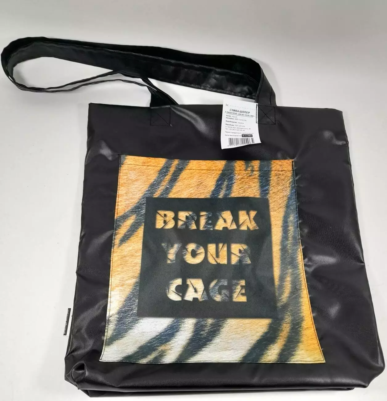 Сумка з кишенею "Break your cage", 40х35 см ручка 60 см