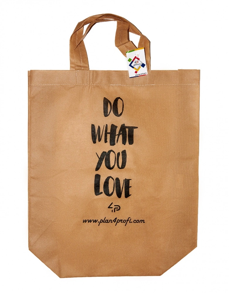 Сумка зі складним боком беж (спанбонд) 35х45 см з принтом
