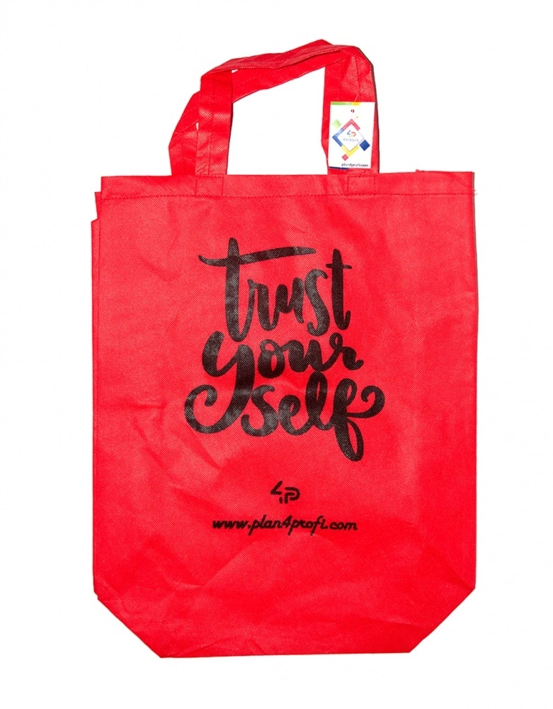 Сумка зі складним боком червона (спанбонд) 35х45 см з принтом