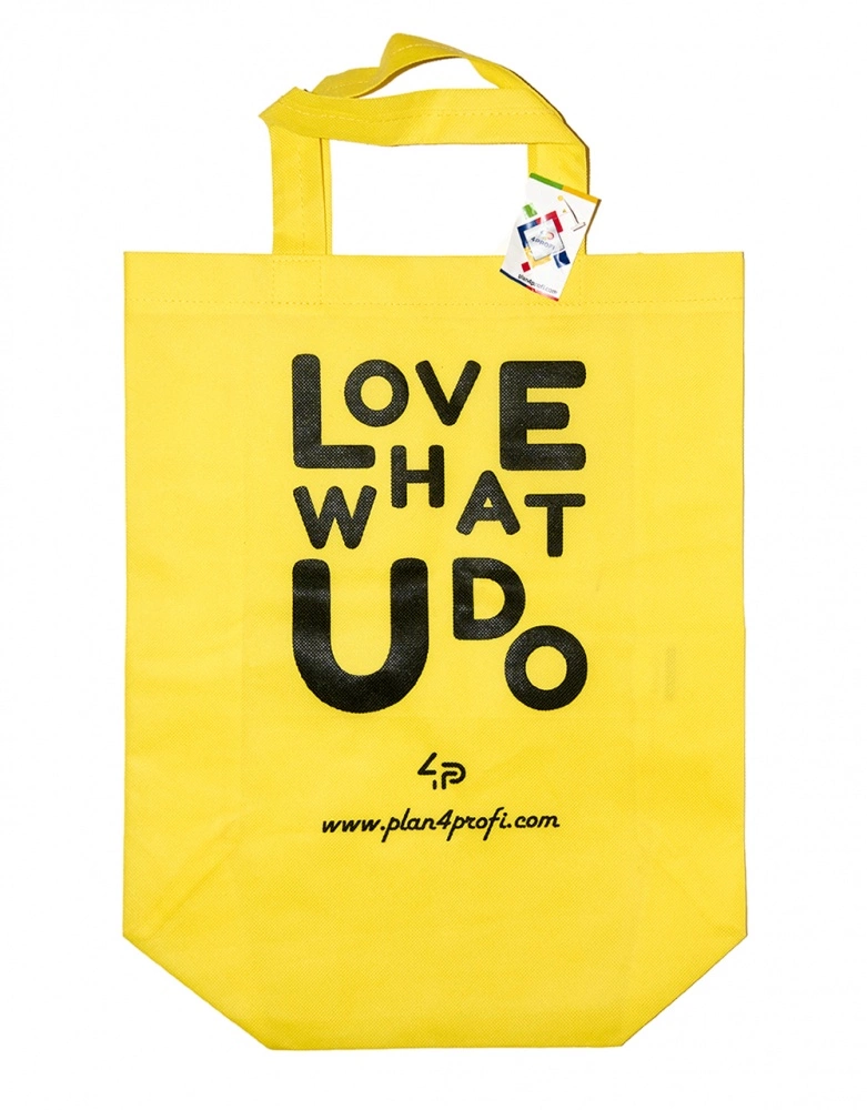 Сумка зі складним боком жовта (спанбонд) 35х45 см з принтом