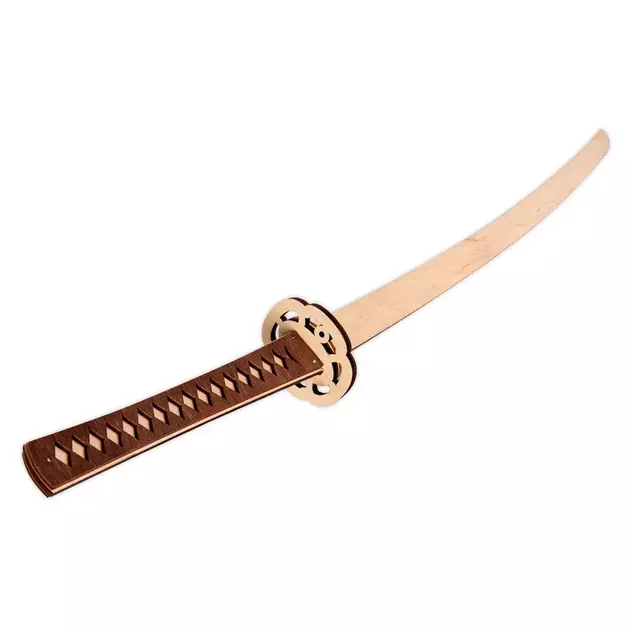 Модель меча сувенірна "Катана". Довжина – 73 см. Виконано з добре відшліфованої фанери. Бренд: Сувенір-Декор Упаковка: Без упаковки Вага в упаковці: 129 г Габарити в упаковці: 78 x 10 x 7 см Країна виробник: Україна Матеріал: Дерево Комплектація: Катана
