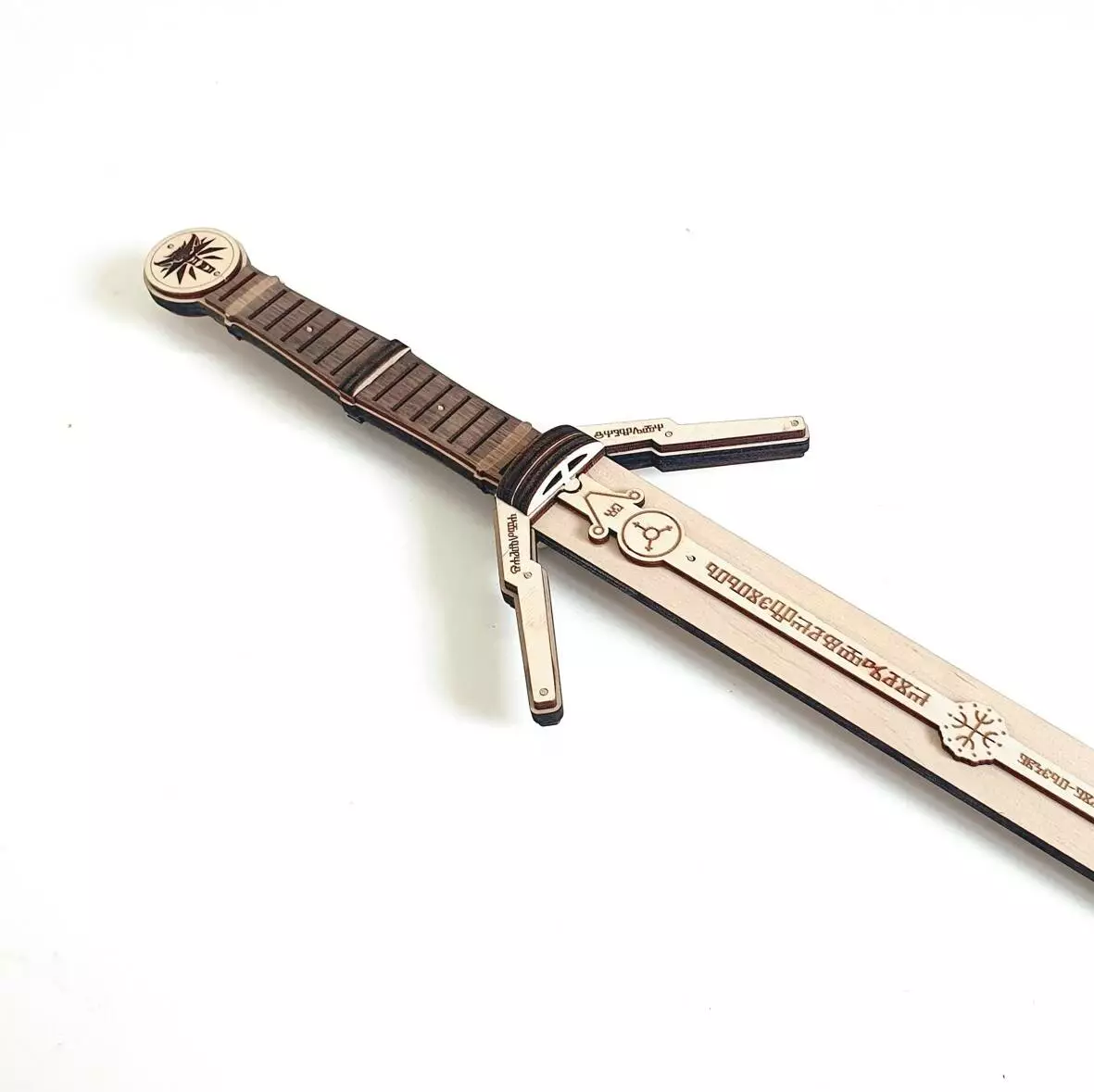 Виконаний в стилістиці срібного меча Відьмака - популярного героя серії романів. Виготовлений з екологічно чистого, шліфованого дерева. Деталізований і дуже схожий на меч з першоджерела. Довжина - 73 см.