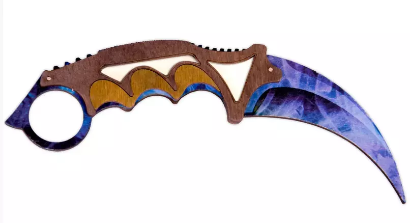 Ніж іграшковий Керамбіт - іграшка для справжніх фанів гри Counter Strike Global Offensive кольору кристал. Матеріал фанера, пофарбований акриловими фарбами та розкритий акриловим лаком. Іграшка безпечна для дитини, вона не заточена, а гострі частини закруглені і зашліфовані. Довжина 26 див. Ширина ручки 3 див. Упаковано на планшетці: 28*7,5 см.