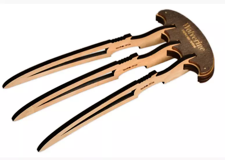 Модель пазурів Россомахи з коміксів Матеріал: фанера різних відтінків Довжина 24 см Країна виробник Україна Тип Холодное оружие Вікова група Від 8 років Колір Дерево Стан Новое Габаритні розміри Довжина 240 мм Ширина 100 мм Висота 30.0 (мм) Вага 120.0 (г) Упаковка Упаковка Дерево+ МДФ Довжина упаковки 220.0 (мм) Ширина упакування 110.0 (мм) Висота упаковки 30.0 (мм)