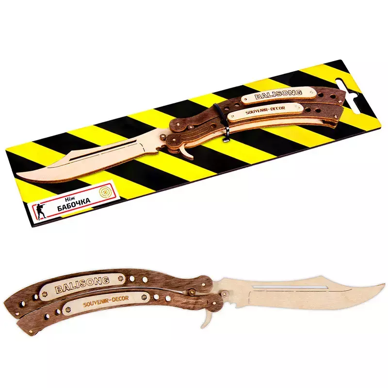 Модель ножа Метелик (Balisong) з гри Counter Strike Global Offensive Діюча модель розкладається Матеріал: фанера різних відтінків Довжина 26см Країна виробник Україна Вікова група Від 8 років Матеріал Дерево Колір Дерево Габаритні розміри Довжина 240 мм Ширина 40 мм Висота 30.0 (мм) Вага 120.0 (г) Упаковка Упаковка Дерево+ МДФ Довжина упаковки 250.0 (мм) Ширина упакування 75.0 (мм) Висота упаковки 30.0 (мм)