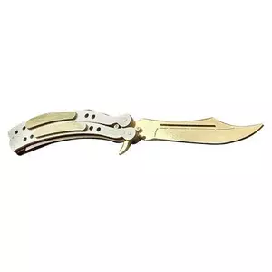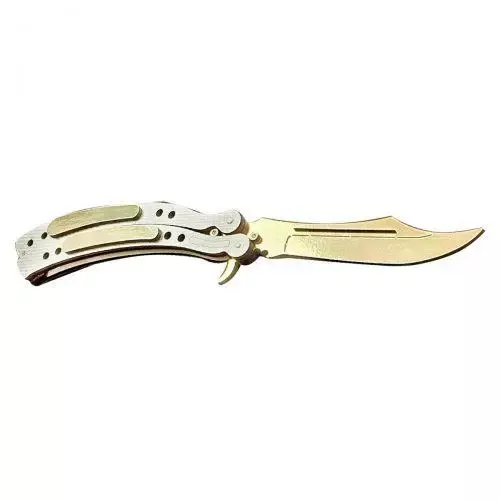 Модель ножа Метелик (Balisong) з гри Counter Strike Global Offensive Діюча модель розкладається Матеріал: фанера різних відтінків ламінована золотою фольгою на оксамитової підкладці Довжина 26см Країна виробник Україна Вікова група Від 8 років Матеріал Дерево Колір Дерево Габаритні розміри Довжина 240 мм Ширина 40 мм Висота 30.0 (мм) Вага 120.0 (г) Упаковка Упаковка Дерево+ МДФ Довжина упаковки 250.0 (мм) Ширина упакування 75.0 (мм) Висота упаковки 30.0 (мм)