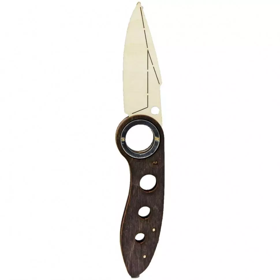 Ніж сувенірний "Викидуха Фліп". Матеріал: березова фанера. Довжина ножа – 21 см, ширина ручки – 3 см. Чудовий подарунок-сувенір. Ніж деревяний, якісний та міцний. Чи не заточений, гострі частини закруглені та зашліфовані, повністю безпечний. Для дітей віком від 6 років.