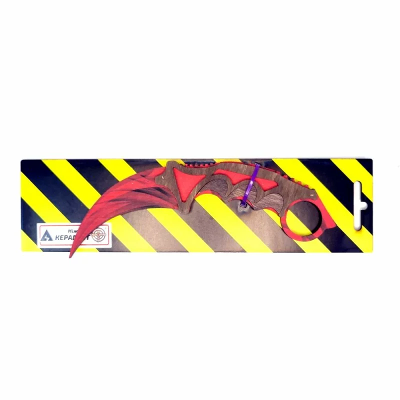 Ніж сувенірний – керамбіт . Матеріал: фанера. Довжина ножа – 20 см, ширина ручки – 3 см. Чудовий подарунок-сувенір. Ніж дерев'яний, якісний та міцний. Чи не заточений, гострі частини закруглені та зашліфовані, повністю безпечний. Для дітей віком від 6 років. Упаковка: Планшет Вага з упаковкою: 75 г Габарити в упаковці: 28.5 x 2 x 7.5 см Габарити без упаковки: 1.5 x 20.5 x 4 см Країна виробник: Україна Матеріал: Фанера Комплектація: Ніж Артикул: SO2CAR-C