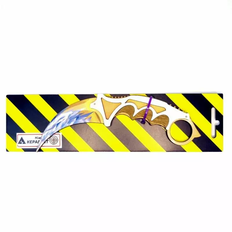 Модель ножа Керамбіт із гри Counter Strike Global Offensive Матеріал: Березова фанера різних відтінків. Довжина ножа 22 см. Упаковка: Планшет Вага з упаковкою: 67 г Габарити в упаковці: 2 x 28 x 7.5 см Габарити без упаковки: 1 x 22 x 5 см Країна виробник: Україна Матеріал: Дерево Комплектація: Нож Артикул: SO2CAR-F