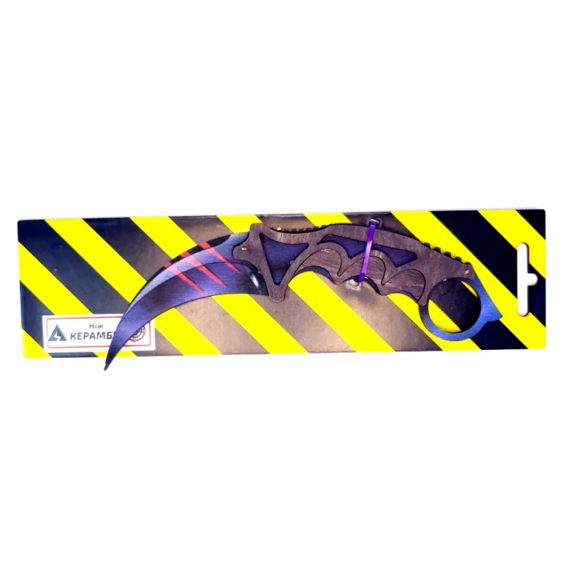 Ніж сувенірний – керамбіт . Матеріал: фанера. Довжина ножа – 20 см, ширина ручки – 3 см. Чудовий подарунок-сувенір. Ніж дерев'яний, якісний та міцний. Чи не заточений, гострі частини закруглені та зашліфовані, повністю безпечний. Для дітей віком від 6 років. Упаковка: Планшет Вага з упаковкою: 75 г Габарити в упаковці: 28.5 x 2 x 7.5 см Габарити без упаковки: 1.5 x 20.5 x 4 см Країна виробник: Україна Матеріал: Фанера Комплектація: Ніж Артикул: SO2CAR-S