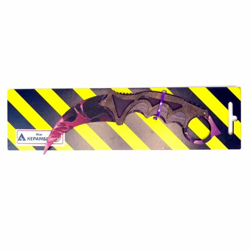 Ніж сувенірний – керамбіт . Матеріал: фанера. Довжина ножа – 20 см, ширина ручки – 3 см. Чудовий подарунок-сувенір. Ніж дерев'яний, якісний та міцний. Чи не заточений, гострі частини закруглені та зашліфовані, повністю безпечний. Для дітей віком від 6 років.Упаковка: Планшет Вага з упаковкою: 75 г Габарити в упаковці: 28.5 x 2 x 7.5 см Габарити без упаковки: 1.5 x 20.5 x 4 см Країна виробник: Україна Матеріал: Фанера Комплектація: Ніж