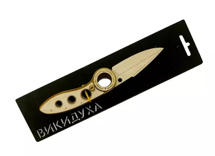 Ніж сувенірний "викідуха Фліп". Матеріал: березова фанера. Довжина ножа - 21 см, ширина ручки - 3 см. Чудовий подарунок-сувенір. Ніж дерев'яний, якісний і міцний. Чи не заточений, гострі частини закруглені і зашліфовані, повністю безпечний. Для дітей від 6 років. Упаковка: Планшет Габарити в упаковці: 8 x 28 x 0.3 см Країна виробник: Україна Матеріал: Дерево Комплектація: Ніж Артикул: FL-WOOD