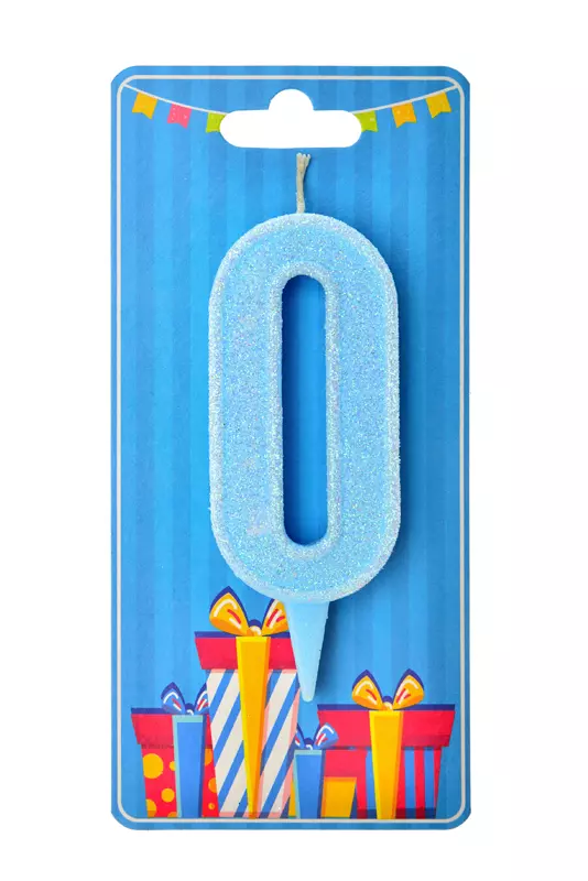 Свічка у формі цифри "0" відмінно підійде для декорування торта або інших десертів Свічку вироблено з якісного парафіну у формі цифри блакитного кольору, посипана зверху білим глітером середньої фракції Розміри: 9,5 см х 3,5 см