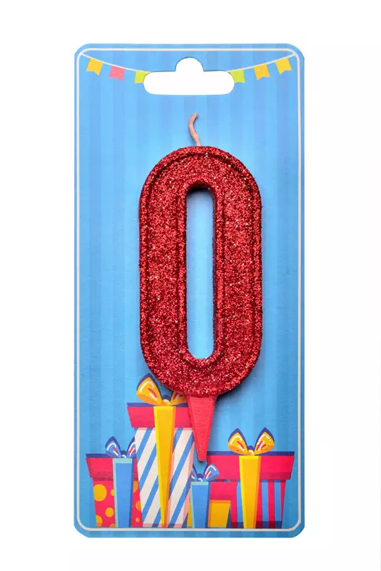 Свічка у формі цифри "0" відмінно підійде для декорування торта або інших десертів Свічку вироблено з якісного парафіну у формі цифри червоного кольору, посипана зверху червоним глітером середньої фракції Розміри: 9,5 см х 3,5 см