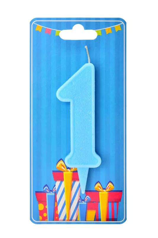 Свічка у формі цифри "1" відмінно підійде для декорування торта або інших десертів Свічку вироблено з якісного парафіну у формі цифри блакитного кольору, посипана зверху райдужним глітером середньої фракції Розміри: 9,5 см х 3,5 см