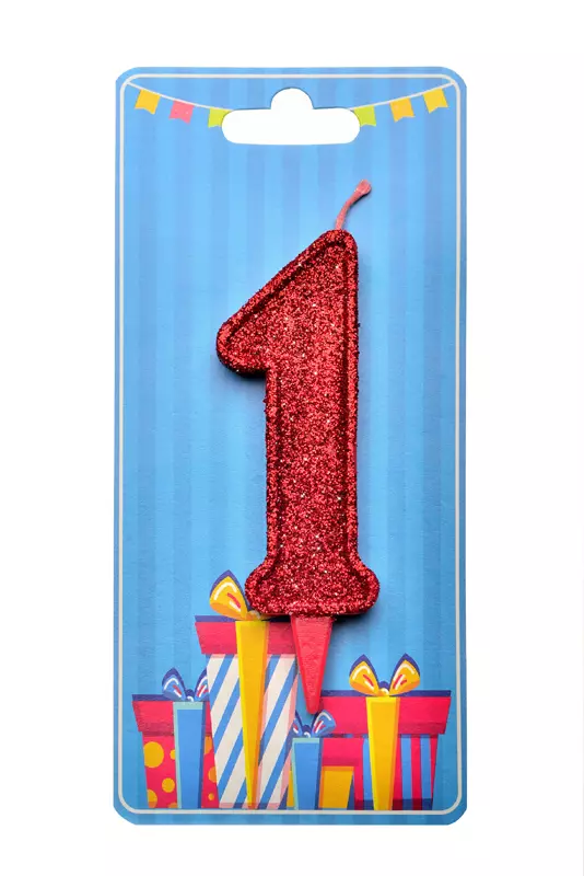 Свічка у формі цифри "1" відмінно підійде для декорування торта або інших десертів Свічку вироблено з якісного парафіну у формі цифри червоного кольору, посипана зверху червоним глітером середньої фракції Розміри: 9,5 см х 3,5 см