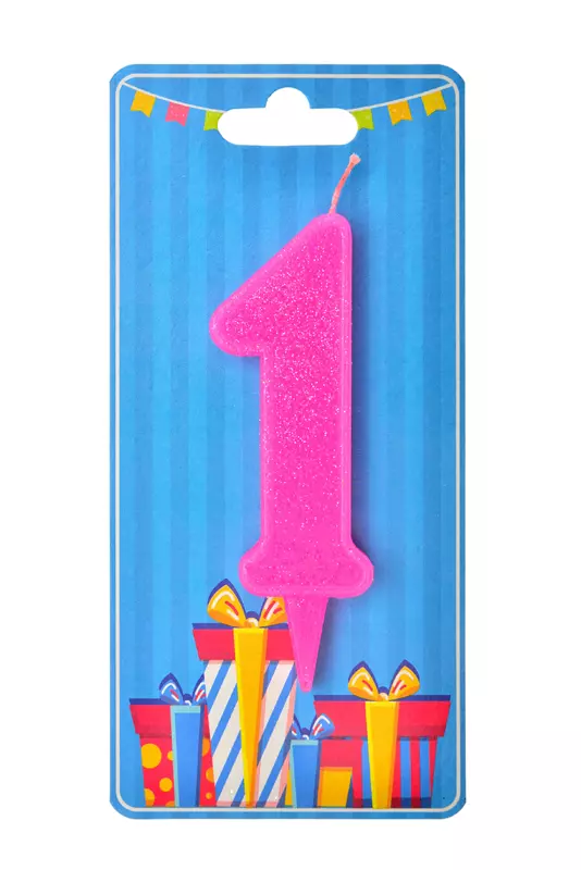 Свічка у формі цифри "1" відмінно підійде для декорування торта або інших десертів Свічку вироблено з якісного парафіну у формі цифри рожевого кольору, посипана зверху райдужним глітером середньої фракції Розміри: 9,5 см х 3,5 см