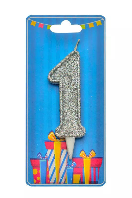 Свічка для торта "Цифра 1" срібло блиск