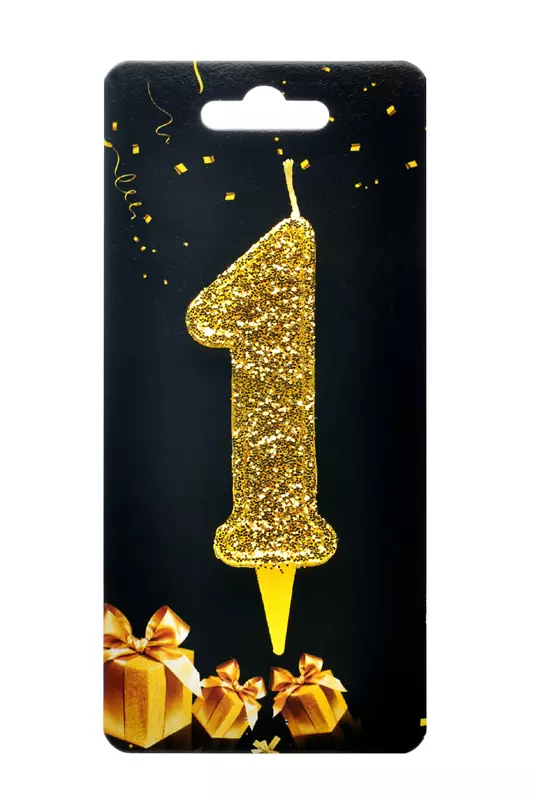 Свічка у формі цифри "1" відмінно підійде для декорування торта або інших десертів Свічку вироблено з якісного парафіну у формі цифри жовтого кольору, посипана зверху золотим глітером великої фракції Розміри: 9 см х 3,5 см