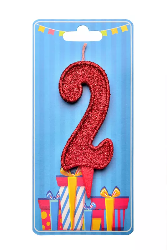 Свічка для торта "Цифра 2" червона блиск
