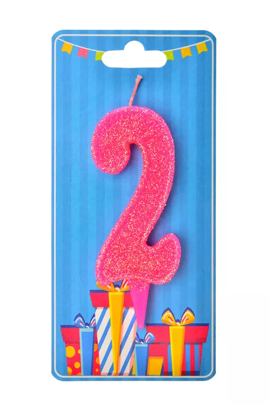 Свічка у формі цифри "2" відмінно підійде для декорування торта або інших десертів Свічку вироблено з якісного парафіну у формі цифри рожевого кольору, посипана зверху рожевим глітером середньої фракції Розміри: 9,5 см х 3,5 см