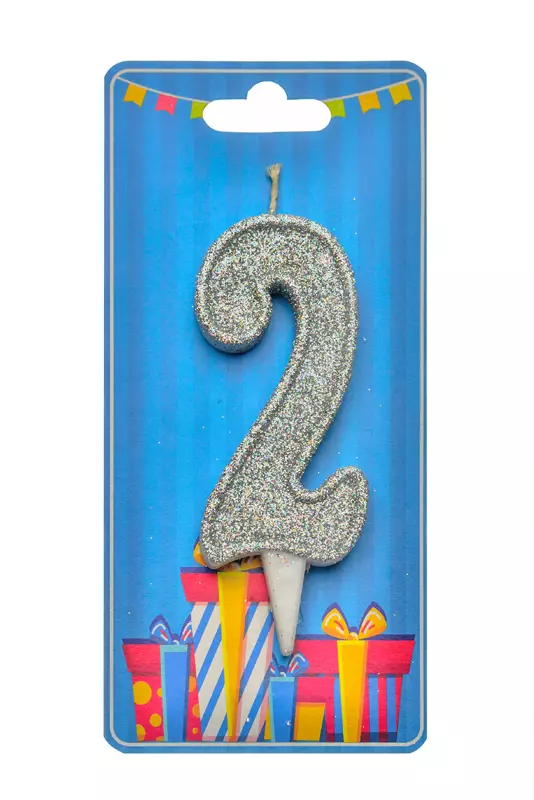 Свічка у формі цифри "2" відмінно підійде для декорування торта або інших десертів Свічку вироблено з якісного парафіну у формі цифри білого кольору, посипана зверху срібним глітером середньої фракції Розміри: 9,5 см х 3,5 см