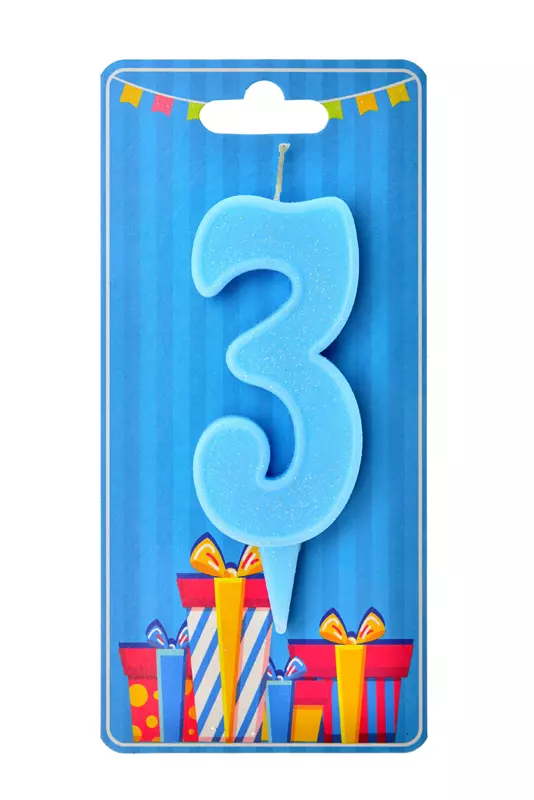 Свічка для торта "Цифра 3" блакитна